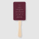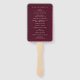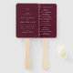 Classic style wedding program hand fan featuring a simple yet elegant design in a deep burgundy color that is perfect for a fall wedding or a winter / Christmas wedding.