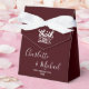 These Deep Burgundy Script Minimalist Wedding Favor Boxes are a beautiful way to thank your guests for sharing in your special day. Each box can be customized with the names of the bride and groom along with the date, adding a personal touch that your guests will love.