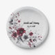 Deep Burgundy Silver Grau Aquarellfarben Blüte Cus Pappteller