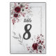 Deep Burgundy Silver Grau Aquarellfarben Blüte Cus Tischnummer