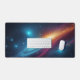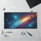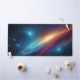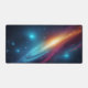 Upgrade your battle station or home office with this incredibly vibrant cosmic galaxy desk mat. Designed for gamers, programmers, and tech enthusiasts, this large mouse pad provides a smooth, expansive surface for flawless mouse tracking and keyboard stability. The artwork showcases a dynamic, abstract space nebula featuring intense cyan, blue, magenta, and orange colors swirling through a deep dark starry universe. The high-contrast, sci-fi aesthetic instantly elevates the look of any desk, providing an immersive and inspiring backdrop for your daily tasks or intense gaming sessions. The vivid, glowing stardust and sweeping cosmic clouds bring a futuristic, synthwave-inspired vibe directly to your workspace. Made with durable materials, this desk mat not only looks spectacular but also protects your desk surface from scratches and spills. It makes a phenomenal gift for the gamer or astronomy lover in your life who wants to add a touch of the extraordinary to their everyday environment.