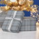 Modernes und ruhiges kariertes Karton-Packpapier in einer coolen, beruhigenden Palette tiefgrau-blau und leicht, weich grau, mit cremefarbenen Linien betont. Perfekt für den Winter, raffinierte Maskuline und minimalistische Geschenke.