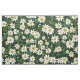 Discover a charming fabric featuring small white daisies on a deep green meadow background. This botanical vintage-inspired watercolor pattern blends cute and trendy floral motifs with elegant leaves, perfect for unique sewing and crafting projects.