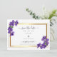 Mit unserer Deep Lila Violets Save the Date Card stellen Sie Ihre kommenden Nuptials mit Eleganz und einem Hauch von Blumencharme vor. Diese exquisite Karte zeigt das Wesen von Romantik und Engagement und gibt den Ton für eine Hochzeit, die sowohl luxuriös als auch herzlich ist.