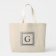 Deep Navy And White Square Border Monogram Jumbo Stoffbeutel