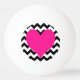 Deep Pink Heart on Black and White Zigzag Tischtennisball