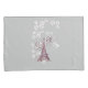 Diese Kissenbezüge sind grau und in tiefroter Farbe mit einer Darstellung des Eiffelturms in Frankreich, umgeben von weißen, dunklen Blume und dem Text Oh Paris.