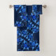Blaues Set mit Blumen. Die dunkelblaue Handtuchhintergrundfarbe kann in Anzug gesetzt werden. Schöne Geschenkidee, personalisieren mit einem Namen. Das geblümte Druckbild ist ebenfalls abnehmbar.
