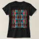 Ein vertikales symmetrisches Fliesenmuster, inspiriert durch die mediterranen und südwestlichen Designstile, besteht aus Reihen geometrischer Formen in Korallen und einer tiefen Rostorange mit Türkis. Hier auf einem schwarzen T - Shirt abgebildet, mit anderen Farben und Stilen verfügbar. Dieses helle und farbenfrohe, polierte Design bietet Ihnen eine warme Ergänzung zu Ihrem lässigen, alltäglichen Kleid (ob für Arbeit/Schule, Sport/Erholung, Entspannung/Geselligkeit oder einfach nur Laufen). Dieses Shirt der "tragbaren Kunst" kann die Eintönigkeit der Kleidung für unsere größtenteils locker anmutende Welt aufheitern und trägt zu einem Gefühl personalisierten Stils bei.