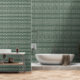 Deep Sage Green und Beige Muster Gemütlicher Raum Tapete