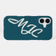 This deep teal (petrol blue) phone case features a minimalist, signature-style monogram placed diagonally across the cover. The initials are fully customizable and designed to flow naturally around the camera lens. Available in multiple color options for a clean, modern, and personal look.