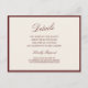 Deep Wine old money wedding details cards designed for a refined, estate-inspired celebration. This Deep Wine and Dried Rose details card features a heritage stripe backing paired with classic Old World calligraphy for a timeless editorial look. Inspired by 2026 Winecore and European manor aesthetics, it’s perfect for the traditional yet style-aware bride. Include hotel blocks, travel information, or wedding website details. Personalize to coordinate effortlessly with your suite.