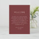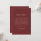 Deep Wine Red Wedding Timeline. Schedule + Welcome Einladung