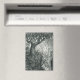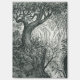 An intimate view deep in a shadowed forest. Black charcoal on off-white strata. From original drawing by Amanda Diehl.