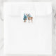 Deer and doe with snowy pine tree quadratischer aufkleber