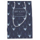 Dieser Geschenksack ist mit einem trendigen Hirschkopf-Silhouette mit kurvennden Geweih-Geweih-Gewürzen, stilisierten Pfeilen und kleinen Schneeflocken in einem strukturierten Effekt in himmelblauen Farbtönen und Schiefer auf marinebasischem Hintergrund ausgestattet. Der optionale Text 'Happy Holidays' und ein Label wurden bereitgestellt, um Ihren Namen und/oder anderen Text hinzuzufügen. Suchen Sie ID861 durch ID864, um weitere Farboptionen und andere Produkte in diesem modernen, weihnachtlichen Design-Set zu sehen.