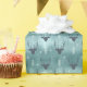 Dieses Verpackungspapier zeichnet sich durch ein trendiges Hirschkopf-Silhouette mit geschwungenen Geweih- und Stilpfeilen sowie durch kleine Schneeflocken aus, die tief aquamarin auf einem texturierten Effekt-Hintergrund in Uhrenblau gehalten werden. Suchen Sie ID861 durch ID864, um weitere Farboptionen und andere Produkte in diesem modernen, weihnachtlichen Design-Set zu sehen.