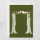 Das Design zeichnet sich durch ein bedrucktes, farbiges Blattelement in Grüntönen aus, das eine tönige Textur aus Kraftpapier mit Hirschantlern und eine weiße Kronendecke mit Kalligrafieschrift oder Schriftzeichen überlagert. Ideal für Ihre Hochzeitsfeiern!