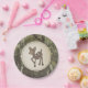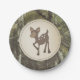 Babyduschpapier-Teller mit einer Abbildung eines Hirsches mit Camouflage-Hintergrund.