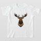 The deer's neck is decorated with a colorful and rich ornament with geometric and floral patterns in shades of black, turquoise, red, yellow and white.