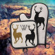 Ofen Mitt und Potthalter Set für den Outdoorsman, der jagt. Hirsche und Geweihe sind in schwarz, braun und grau gehalten. Der Pothalter hat eine Vorlage, um einen ersten Namen in einem Grunge-Schriftart hinzuzufügen.