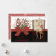 Genießen Sie diese schöne handbemalte Weihnachtskarte, die Sie drucken und/oder herunterladen und an Ihre Familie oder Verwandte schicken können. Es verfügt über ein niedliches Hirsch. Der untere Teil ist schwarz mit individuellem Text und einem roten Bogen in der Mitte, der den schwarzen Boden vom weißen Oberteil trennt, mit wunderschön gefertigtem Blumengestein über dem Bogen. Aktualisieren Sie einfach den Gruß, um es zu Ihrem.