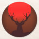 Deer Silhouette with Fiery Red Sunset Runder Pappuntersetzer