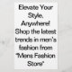 Treten Sie ein in eine Welt des unvergleichlichen Stils im "Mens Fashion Store", wo Mode auf Funktionalität trifft. Entdecken Sie unsere exklusive Kollektion von Männerbekleidung und Accessoires, die Ihr Aussehen von lässigen essenziellen Elementen bis hin zu anspruchsvoller formaler Kleidung erhöhen. Bestellen Sie bequem von unserem Online-Shop und genießen Sie schnellen Versand, Premium-Qualität und einzigartige Designs, die auf Ihren Geschmack zugeschnitten sind. Ob Sie Ihren Kleiderschrank erfrischen oder ein besonderes Stück suchen, wir haben alles, was Sie brauchen, um Ihren Stil mit Zuversicht auszudrücken. Besuchen Sie uns heute und verwandeln Sie die Art und Weise, wie Sie kleiden!