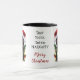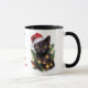 Auf dieser Tasse ist eine verwirrte schwarze Katze in einer Reihe von Weihnachtsbaumleuchten verstrickt. Die Katze trägt einen rot-weißen Hut des Weihnachtsmanns. Das Bild wird zweimal auf der Tasse gedruckt, mit Textfeldern zwischen den Bildern. Derzeit steht in dem Text "Lieber Weihnachten, Definition NAUGHTY" und "Frohe Weihnachten". Sie können den Text ganz einfach auf alles ändern, was Sie wollen, und ihn auch personalisieren. Niedlich für Groß und Klein, besonders wenn es im Haus eine Unheil-Katze gibt!