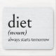 Definition von DIET in schwarzem Text auf weißem Holzhintergrund. Der Hintergrund kann geändert werden.