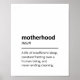 Ein Poster mit einer lustigen Wörterbuchdefinition für die Mutterschaft. Es heißt "Ein Leben, in dem nicht genug Schlaf herrscht, ein menschliches Wesen ständig überrollt wird und das niemals enden wird." Ein amüsantes Geschenk für die Mutter, um den Müttern für ihre Opfer zu danken!