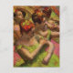Degas Green Ballerinas Postkarte. Pastel aus dem Jahr 1899. Der französische Künstler Edgar Degas malte einige der charmantesten Ballettgemälde der impressionistischen Ära. Green Ballerinas oder Ballerinas passen ihre Kleider an, ist ein farbenfroher Pastellton mit vier französischen Ballerinas, die ihre Kostüme vor dem Ballett überprüfen. Die vier Mädchen tragen rosa und grün Tutus und gelbe Blumen im Haar. Ein hübsches Geschenk für Ballettfans, Ballerinas, Edgar Degas und Impressionismus.