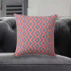 Kissen mit einem Design in einem Muster aus rosa und grauen Pfeilen. Ein wiederholtes Zickzackmuster schafft ein gewagtes, regelmäßiges Design. Die Farben sind grau und rosa.