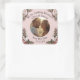 Dein Foto, Datum speichern, rosa Rosen & Tauben Quadratischer Aufkleber