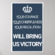 Ende 1939, nach dem Ausbruch des Krieges, entwarf die britische Regierung eine Reihe von moralischen Poster, die während der Testzeiten des Zweiten Weltkriegs auf den Britischen Inseln gezeigt werden sollten. Die Plakate mit kühlem Hintergrund waren die Krone von König George VI. und eine inspirierende Botschaft. Die meisten sind mit der "Keep Calm and Carry On"-Version vertraut, aber es gab auch die "Your Courage, Your Cheerfulness, Your Resolution wird uns den Sieg bringen"). ". All diese Jahre später finden es die Menschen noch immer attraktiv und beruhigend in unserer modernen Zeit. Aber mit dieser Vintagen Propaganda motivierend Vorlage können Sie es sagen, genau, was Sie brauchen, um Sie motiviert behalten.