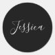 Dein Name | Elegantes weißes Script auf schwarz Runder Aufkleber