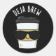 Deja Brew Funny Coffee Pun Dark BG Runder Aufkleber