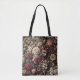 Barockblüten begegnen Höllenzorn. Die dekadente Schurke webt durch ein üppiges Gewirr von Rose, Elfenbeindahlien und vergoldetem Blattwerk Dämonenbilder. Schönheit verwelkt wie wütende Blüten. Ein üppiger Fluch, der in samtene Blätter eingewickelt ist.