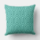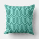Ein Art-Déco, ein ägyptisches geometrisches Motiv in türkisblau auf einem hellen Kissen im Hintergrund des Wassers
