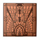 Keramikfliese in einem geometrischen Muster basiert auf Kunst-Dekoarchitekturdetails - dunkles schokoladenbraunes auf einem Kupfer-/Rosthintergrund