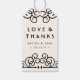 Bringen Sie diese eleganten Geschenketiketten an Ihre Gastgeschenke Hochzeiten, um Ihre Liebe und Ihren Dank auszudrücken. Diese schicken Art Deko Tags, die mit unserem Deko Geblüht wurden, zeichnen sich durch einen warmen Elfenbeinhintergrund und verzierte Vintage geblüht Illustrationen aus. "Liebe und Dank", Ihre Namen und das Hochzeitstag werden in elegantem Deko in knusprigem Schwarz dargestellt. Alle Textfelder sind für die ultimative Anpassung bearbeitbar, und die Rückkopplungen sind leer, um leicht zu schreiben oder zusätzlichen benutzerdefinierten Text hinzuzufügen.