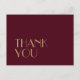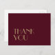 Dieser Deko vom Goldtyp | Burgund Hochzeit danke Postcard spricht auf ein Minimalisten mit einer eleganten und königlichen, traditionellen und klassischen Hochzeit. Die einfache und schlichte Gold- und Darkcabernet- und Himbeerbaukunst mit der modernen antiken Deko-Typografie stellt einen formelleren, klassischen Luxus dar und bleibt gleichzeitig minimal und vielseitig für Ihre Hochzeitsdekoration. Eine tolle Farbe für einen Urlaub oder ein Weihnachtsfest!