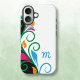 Personalisieren Sie dieses elegante Case-Mate Markengehäuse für Ihr Handy mit Ihrem eigenen Monogramm. Editieren Sie einfach im Zazzle Texteditor. Erstellt in einem fett schwarz-weiß geschraubten Blattrahmenmuster mit hellen Farbspritzen.