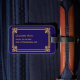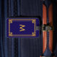 Ein marineblau-blauer Hintergrund, der mit einem Rahmen im Art Decor-Stil dekoriert ist. Personalisieren Sie Ihren Monogramm-Brief und fügen Sie ihn hinzu. Zurück: Fügen Sie Ihren vollständigen Namen und Ihre Kontaktinformationen hinzu.