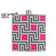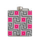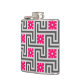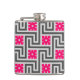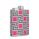 Flasche in einem Art-Déco griechischen Schlüssel oder Labyrinth Muster in hellsilbergrau / grau und dunkelgrau akzentuiert mit tiefgründig fuchsienrosa