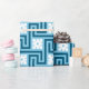 Schlüssel- oder Labyrinthmusterverpackungspapier des Kunst-Dekos griechisches im weichen Himmelblau und in der Dunkelheitsmarine/im Indigo, betont mit Weiß