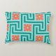 Art Deco griechischer Schlüssel oder Labyrinth Muster Akzent Kissen in Türkis / Pfauenblau akzentuiert mit Korallenorange