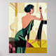 Poster in einer eleganten Art Déco / Jazz-Amateurdame in Jadegrün, mit einer Wineglass, in einem halb abstrakten, modernen Stil