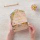 Dieses Design zeichnet sich durch eine weiche pfirsichfarbene, grüne und goldene Blume auf einem weichen, braunen Weichbogen auf einem pfirsichfarbenen Hintergrund aus. Personalisierte All-In-One-Einladungen sind eine einzigartige Kombination aus einer schön gedruckten, maßgeschneiderten Einladung und einer leicht zu abreißenden perforierten UAWG-Postkarte. Und sie sind so einfach zu bedienen! Man falte einfach, dann Siegel die Rückklappe mit den drei beiliegenden Klarkleben, und Post. Und wenn Ihre Gäste Ihre persönliche Einladung erhalten, reißen sie einfach die perforierte RSVP Karte ab und lassen sie in der Mail an Sie zurück!