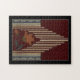 Vintages Deko-Design mit geometrischen Mustern, Blume und dunkelrotem Hintergrund mit Lederlook.